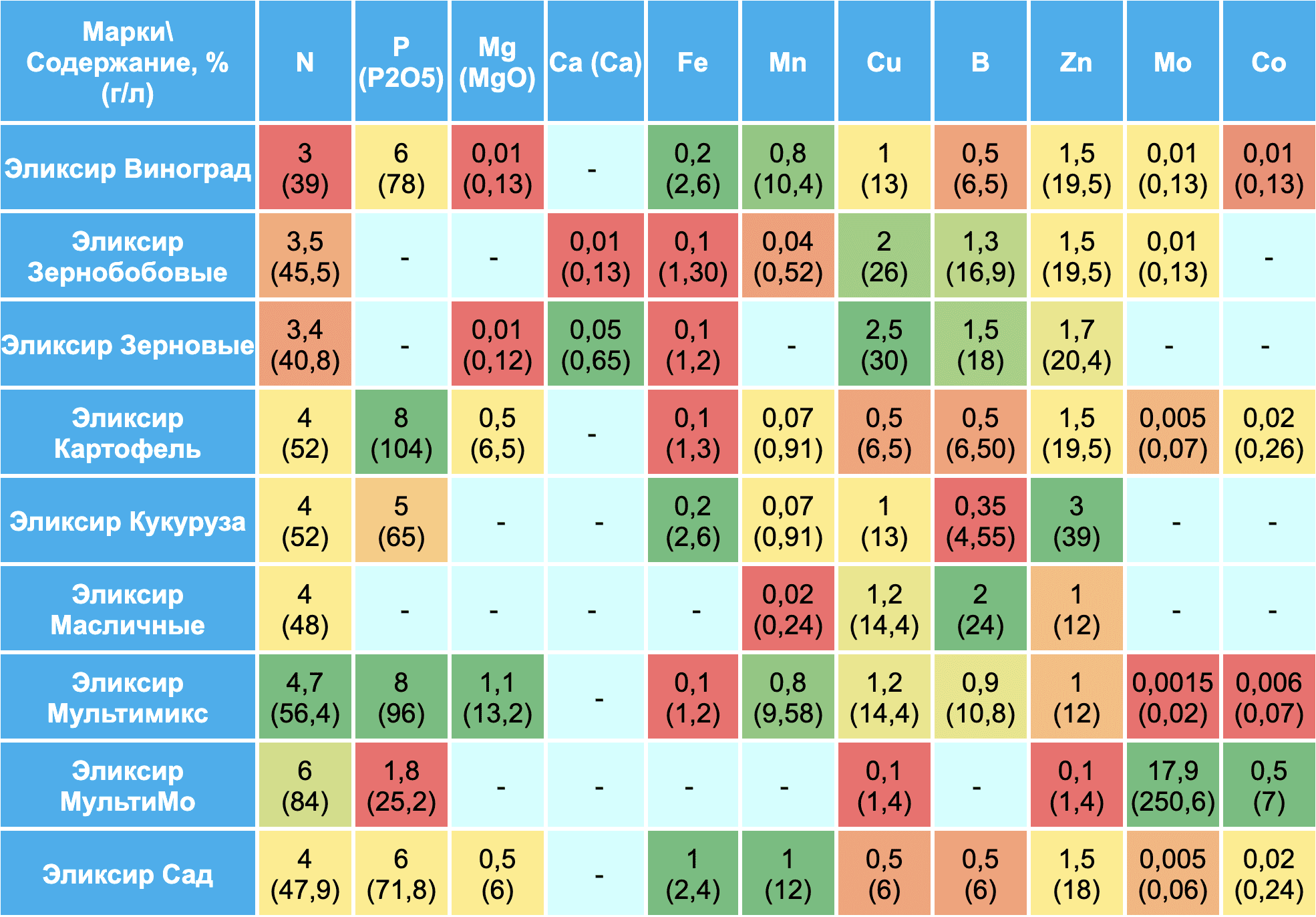 Жидкое комплексное удобрение для листового и корневого питания винограда, содержащее макроэлементы (P, N), мезоэлемент (Mg), а также набор микроэлементов (Zn, Cu, Mn, B, Fe, Mo, Co), представленные в легкоусвояемой форме хелатов и органических соединений. Посмотреть
