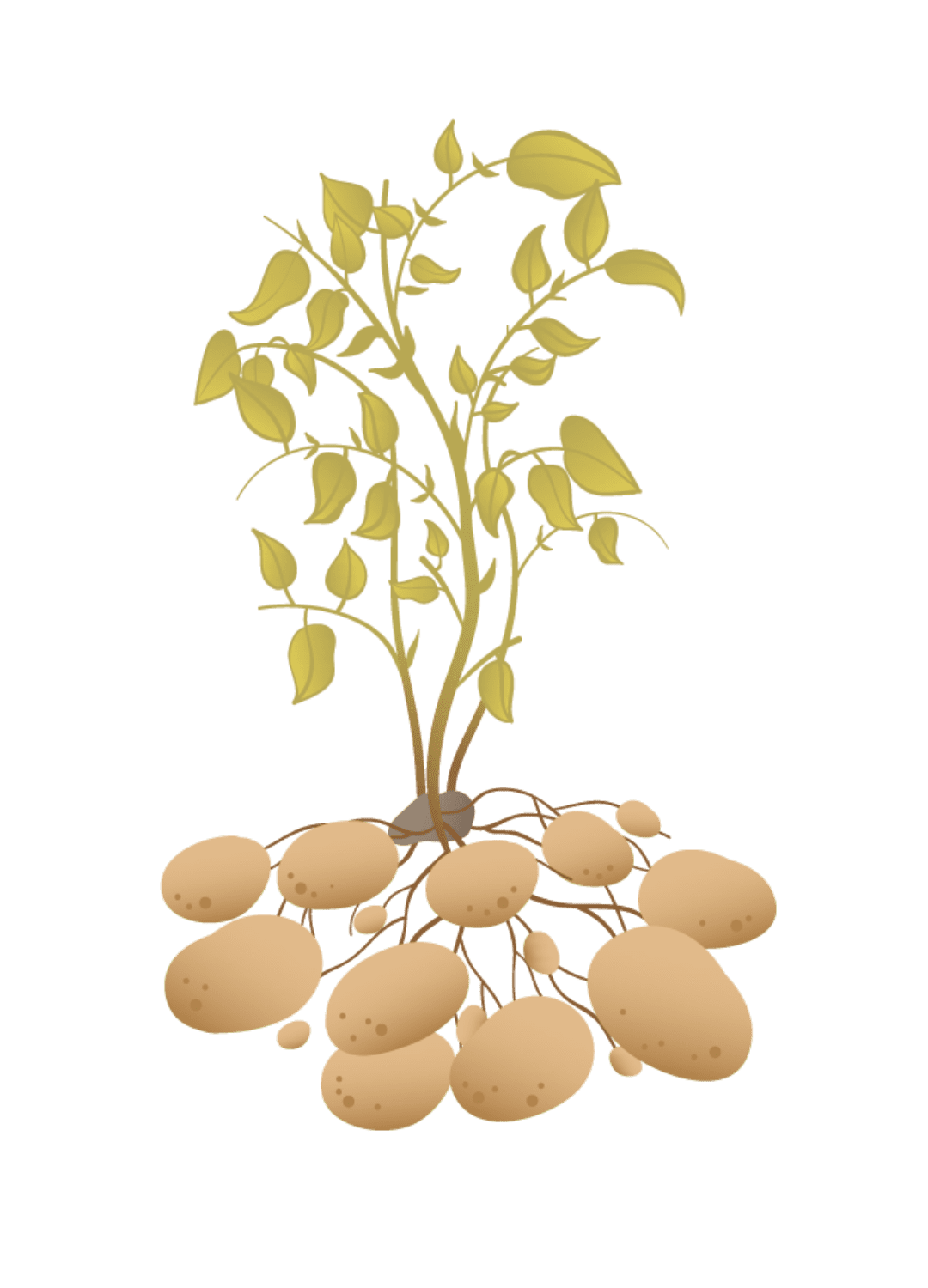 Пятый этап — высадка клубней картофеля. Клубни и молодые всходы особенно нуждаются в защите. Они могут быть подвержены целому комплексу заболеваний: ризоктониоз, альтернариоз, парша. Немалый урон всходам способны наносить и почвенные вредители, такие как проволочник, медведки, совки, нематоды, картофельная моль. Для защиты от болезней и вредителей мы рекомендуем использовать инсектофунгицидный протравитель, подходящий для картофеля.