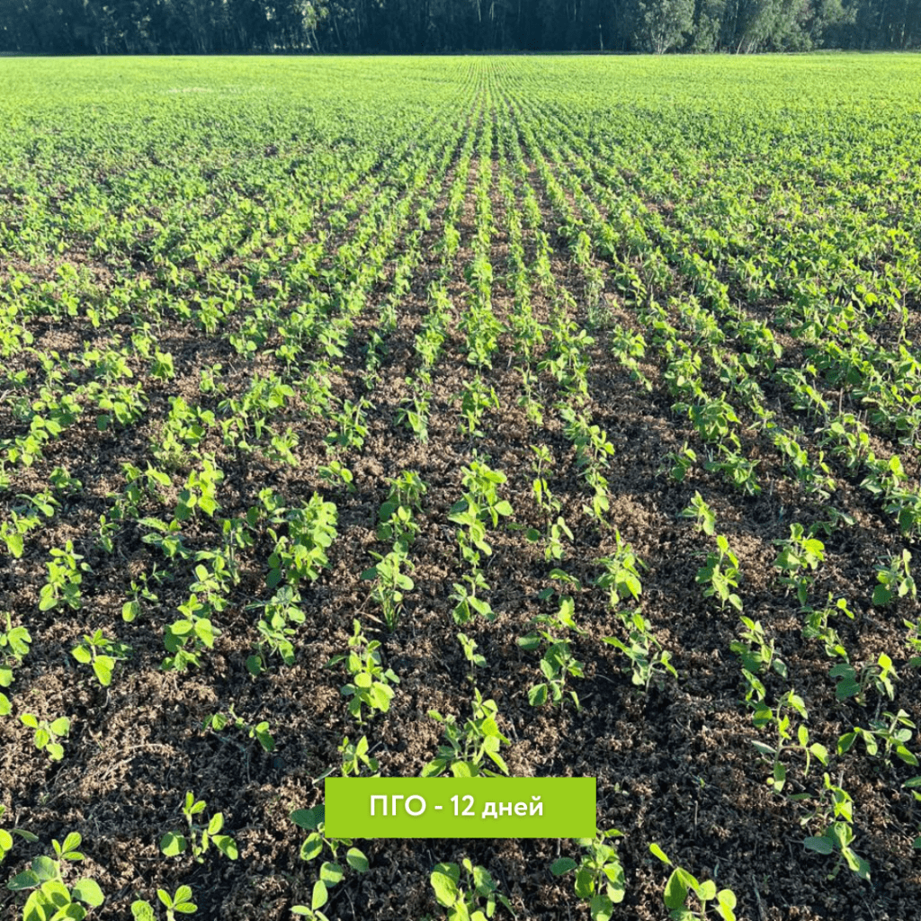 На фото видна высокая эффективность гербицидной баковой смеси, в составе которой были Сиквел, ВР и Зодиак, ВР. Смесь применялась в засорённых посевах сои, в фазу 1-го тройчатого листа.