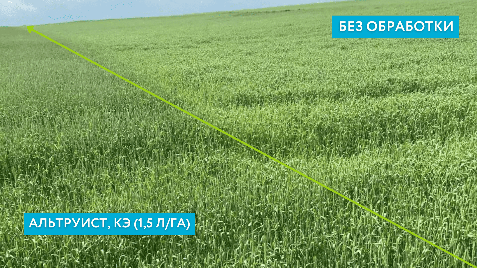 Оцените эффективность фунгицида Альтруист, КЭ при обработке посевов озимой пшеницы на фото.