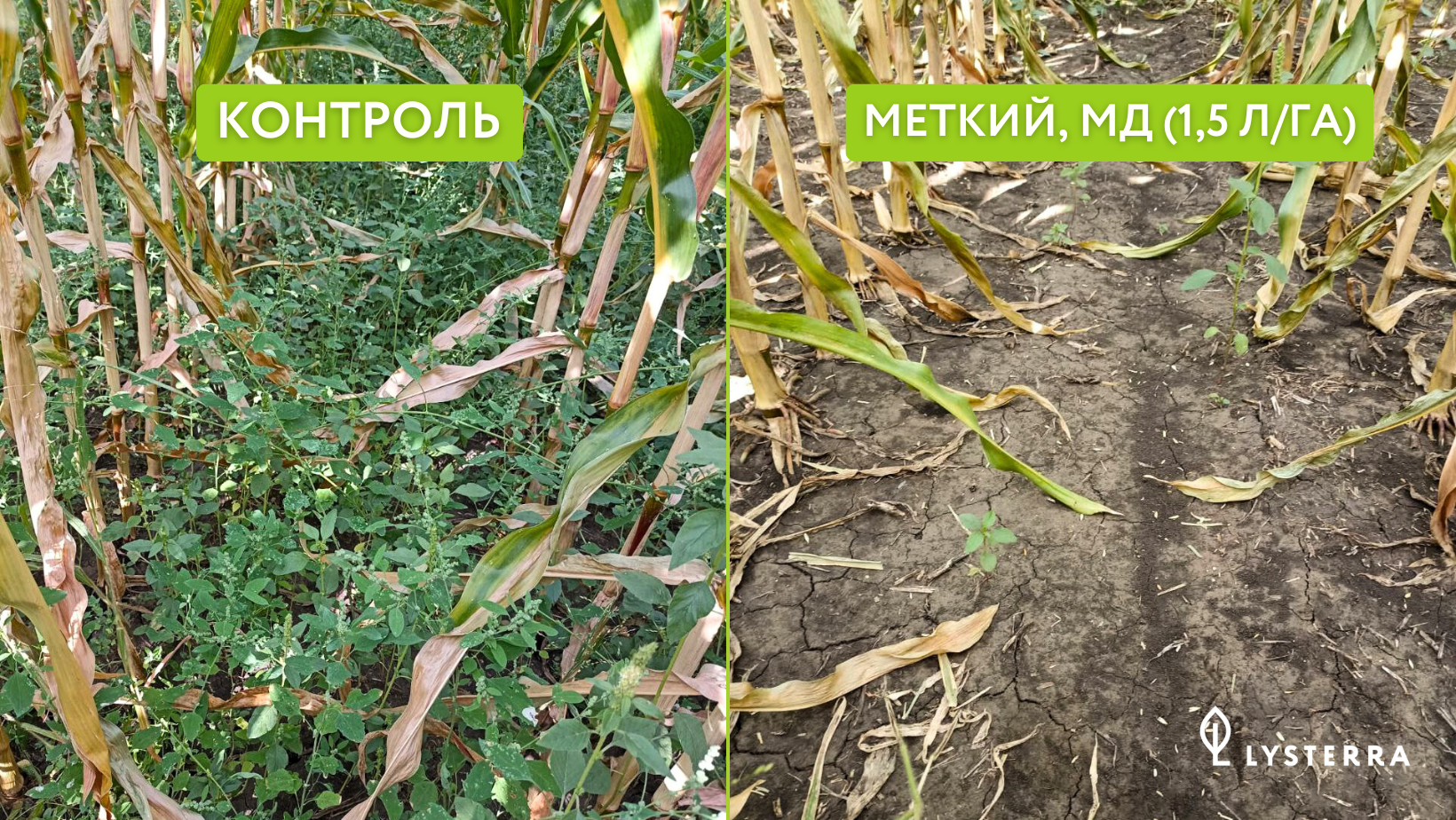 Посмотрите, как работает гербицид Меткий, МД в посевах кукурузы на фото.