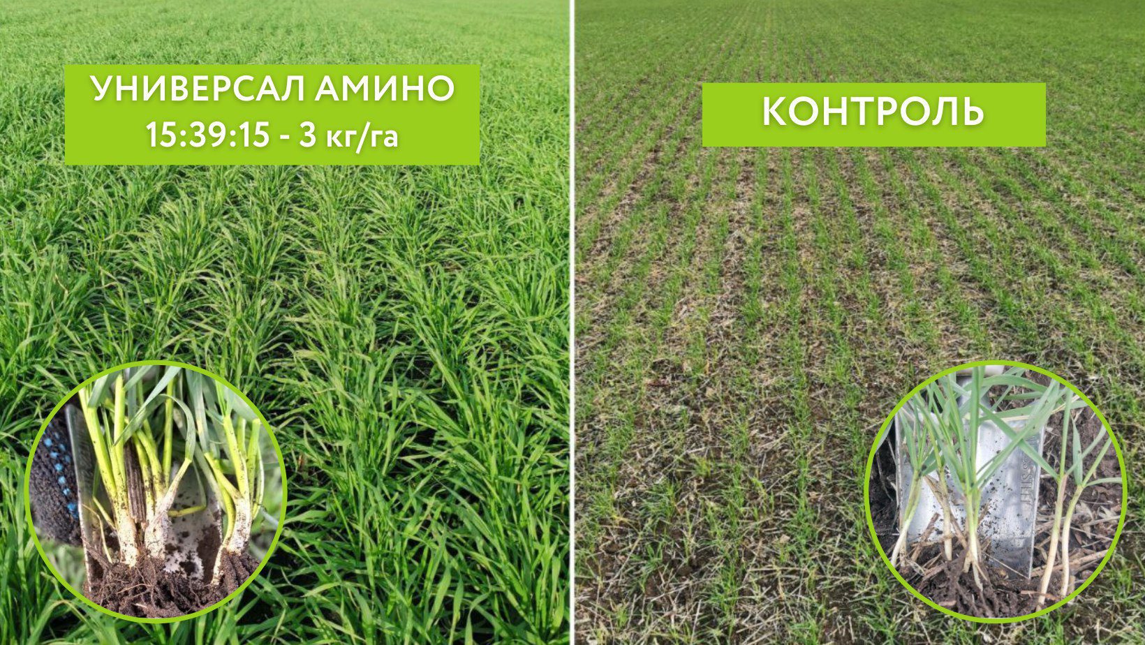 Результат осенней обработки озимой пшеницы УНИВЕРСАЛ АМИНО 15:39:15